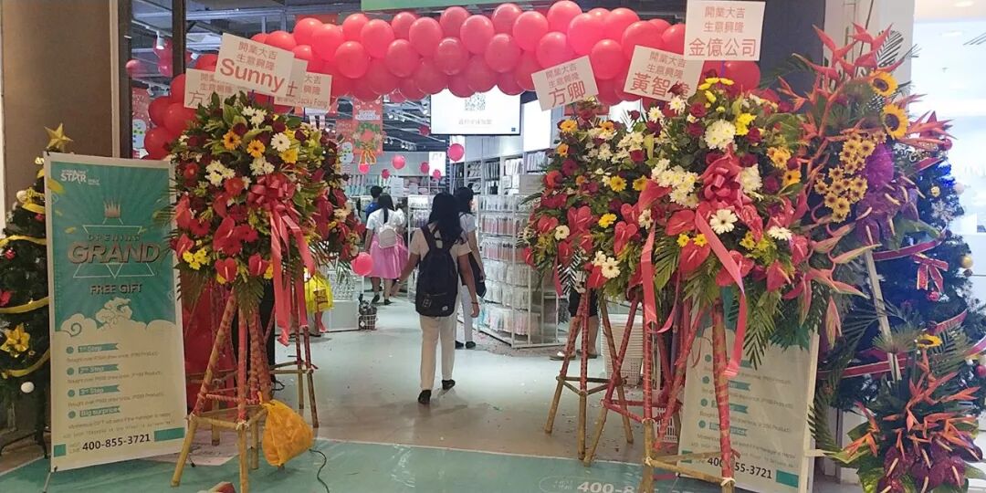 开业当天 祝贺的花篮喜庆洋溢
